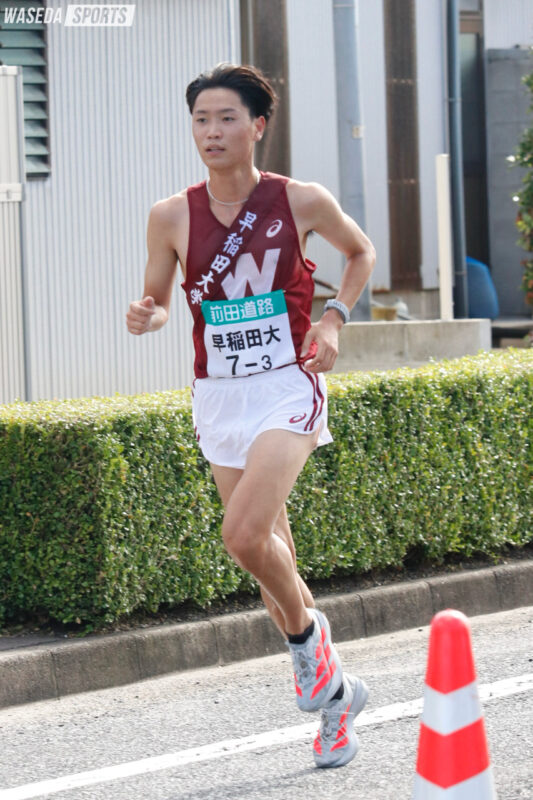 前半の重要区間である3区には、こちらも1年生の堀野正太(スポ1=兵庫・須磨学園)が起用された。ロード巧者の堀野は夏合宿から調子を上げ、9月の「The Road of WASEDA」で5キロ13分49秒をマーク。猛アピールで出雲は5区に選出された。結果は区間7位と本人としては振るわなかったが、花田勝彦駅伝監督(平6人卒=滋賀・彦根東)は「攻めの走りは良かった」と称賛。強敵が集うであろう3区でも攻めの走りでチームの順位を押し上げる。