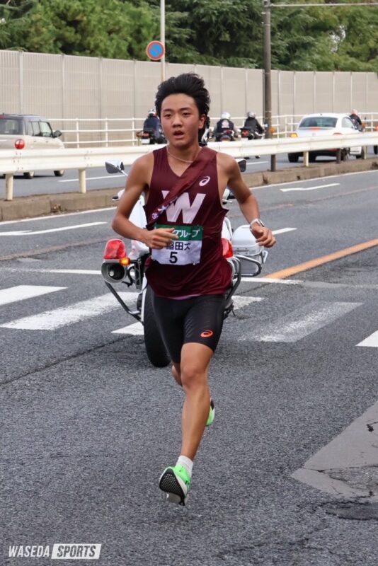 出雲全日本大学選抜駅伝(出雲)から3週間後の11月2日、大学三大駅伝第2戦にあたる全日本大学駅伝対校選手権(全日本)が開催された。早大は山口竣平(スポ2=長野・佐久長聖)や佐々木哲(スポ1=長野・佐久長聖)といった主力が不在のなかでも、総合5位でレースを終えた。なかでも、8区を任された工藤慎作(スポ3=千葉・八千代松陰)は、渡辺康幸氏(平8人卒)が保持していた日本人最高記録を30年ぶりに更新。また、2人の選手が三大駅伝デビューを果たし、チームとしても早大新記録を樹立。次戦へつながる明るい材料を得た。