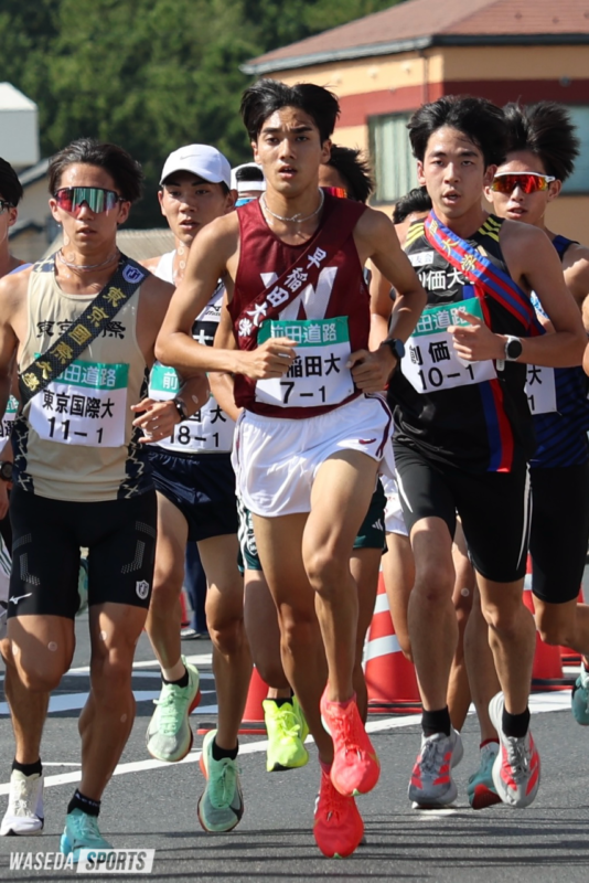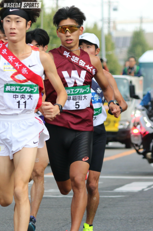 各校のエースがしのぎを削る「花の2区」には、3年連続山口智がエントリーされた。駅伝主将に就任した山口智は、さらなる強さを求めてオーストラリア・メルボルンへ単身で約2カ月間の遠征を敢行。6月の日本インカレでは日本人初となる1500メートルと5000メートルの2冠を達成し、7月のホクレン・ディスタンスチャレンジ千歳大会では5000メートルで日本学生歴代3位、早大新記録となる13分16秒56をマークした。その驚異的な強さは駅伝シーズンに入っても健在だ。出雲では2区を任され、大学入学後初となる区間賞を獲得した。今大会2区には、上原琉翔(国学院大)や溜池一太(中大)らが名を連ね、当日変更で黒田朝日(青学大)が投入される可能性も高い。2年時は区間4位、3年時は区間12位。酸いも甘いもかみ分けてきた舞台が、再び巡ってきた。大学ラストイヤー、駅伝主将として、常に「1」を追い求めてきた山口智の視界に、もう「1位」以外は映らない。