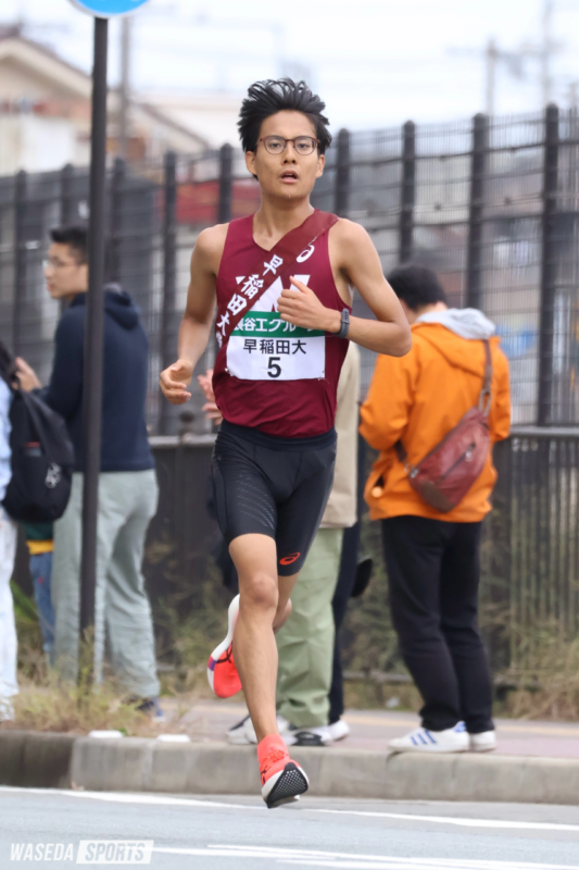 また、一般入試で早大に進学した伊藤幸太郎(スポ4=埼玉・春日部)は最初で最後の箱根路の切符をつかんだ。ラストイヤーは東京六大学対校陸上5000メートルで臙脂(えんじ)デビューを果たすと、関東インカレではハーフマラソンで臙脂(えんじ)を背負い、急成長を遂げた。上尾ハーフでは早大歴代10位となる1時間2分14秒を叩き出し、調子は常に上向いている。記録が伸びず、危機感を抱いた日もあった。選手としての夢が断たれ、サポートに回る自分の姿が頭をよぎったこともある。それでもすべてを乗り越えてきた伊藤幸。幼いころからの夢に向かってその道のりを一歩一歩自分の足でつないできた。夢の終着点はもう目の前にある。