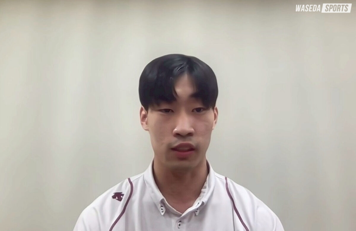12月1日に開会式を迎える全日本大学選手権大会(全日本インカレ)直前に、シード校の男女4チームの主将が記者発表に登壇した。早大からは前田凌吾主将(スポ4=大阪・清風)が参加し、各主将が1年の集大成に向け意気込みを語った。12月2日に大田区総合体育館にてびわこ成蹊スポーツ大学との初戦が行われる。