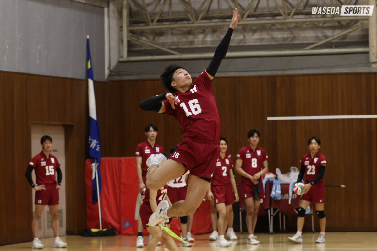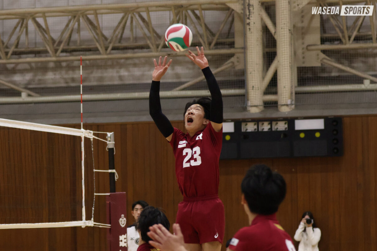 全日本選手権大会(全日本インカレ)を目前に控える中、第76回早関定期戦が早稲田大学上井草体育館で行われた。関学大は今年度の秋季関西大学リーグ戦では2部優勝を果たし、1部への昇格を果たしたチームだ。早大は立ち上がりが悪く、相手の勢いのあるプレーに押される場面もあったが、最終セットはメンバーを大きく入れ替え、セットカウント3―0(25―15、25―21、25―12)と大差をつけて勝利した。
