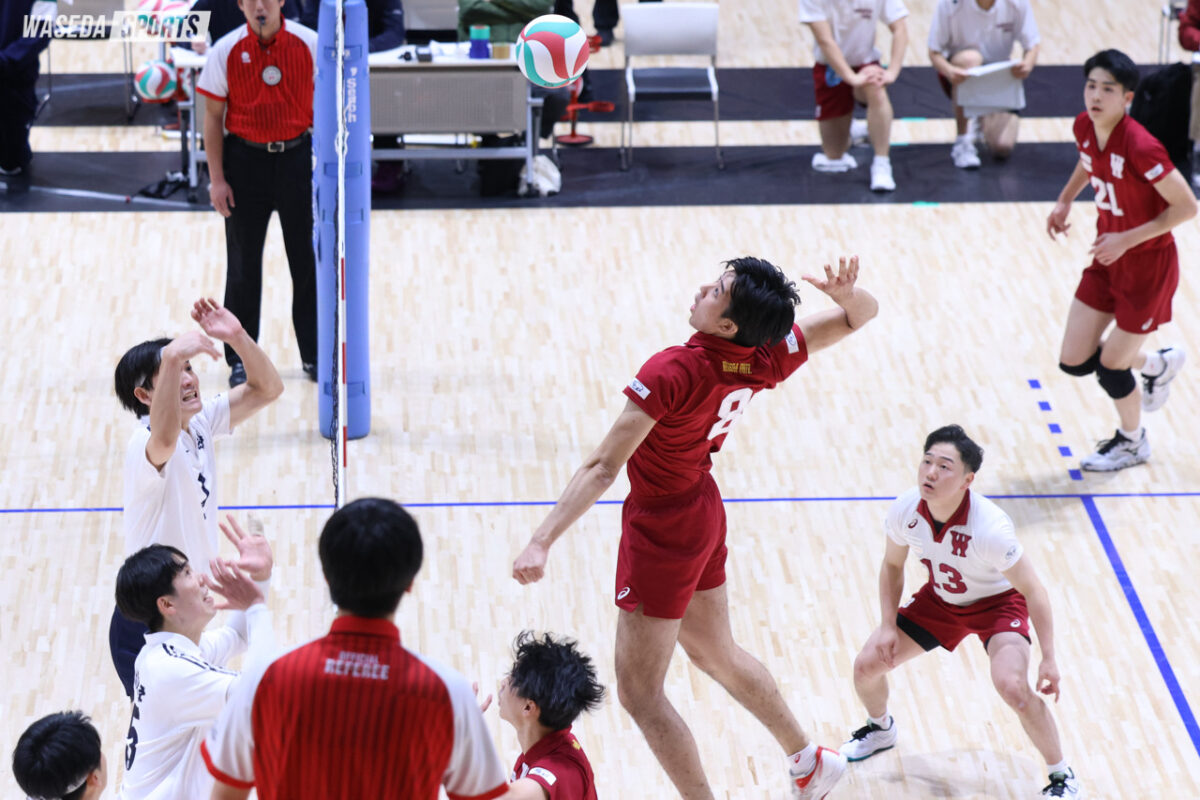 全日本大学選手権(全日本インカレ)3回戦、早大は日体大と対戦した。昨年の全日本インカレ、そして今年の秋季リーグ戦で敗北を喫した因縁の相手だった。第1セットから一進一退の展開が続く。第2セットはデュースまでもつれた戦いを制し、第3セットは序盤からリードを保って最後は相手を突き放し、セットカウント3ー0(25-23、26-24、25-21)で勝利した。