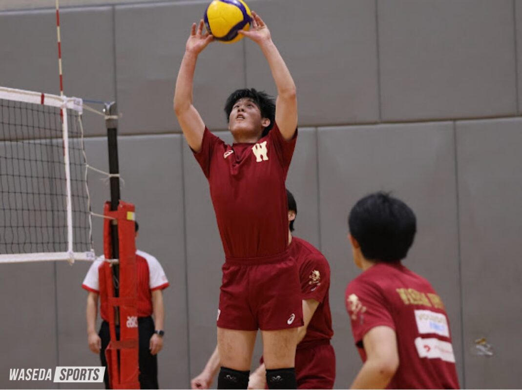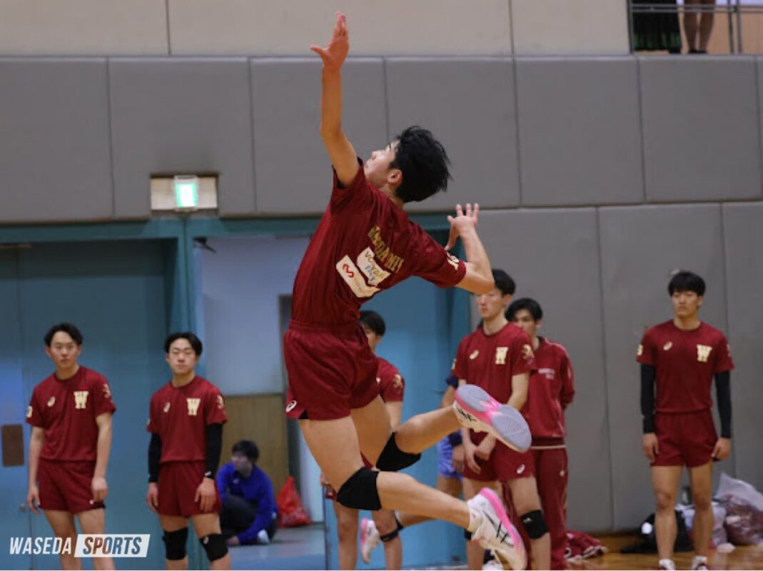 第2セットはスタメンを4人変更し臨んだ。楓のブロックタッチから徳留巧大(スポ3=長野・松本国際)が拾い、齊藤煌太(1=京都・洛南)がスパイクを決めるなど新入生の活躍もありブレイクに成功する。中盤に早大のミスから4連続で失点するも、徳留のサービスエースや中上烈(スポ2=京都・洛南)のスパイクで落ち着いてブレイクを重ねる。齊藤のサービスエースを含む3連続得点で前に出ると、最後は本多心(教2=東京・早実)のレシーブから中上がバックアタックを決め25―22でセットを取った。