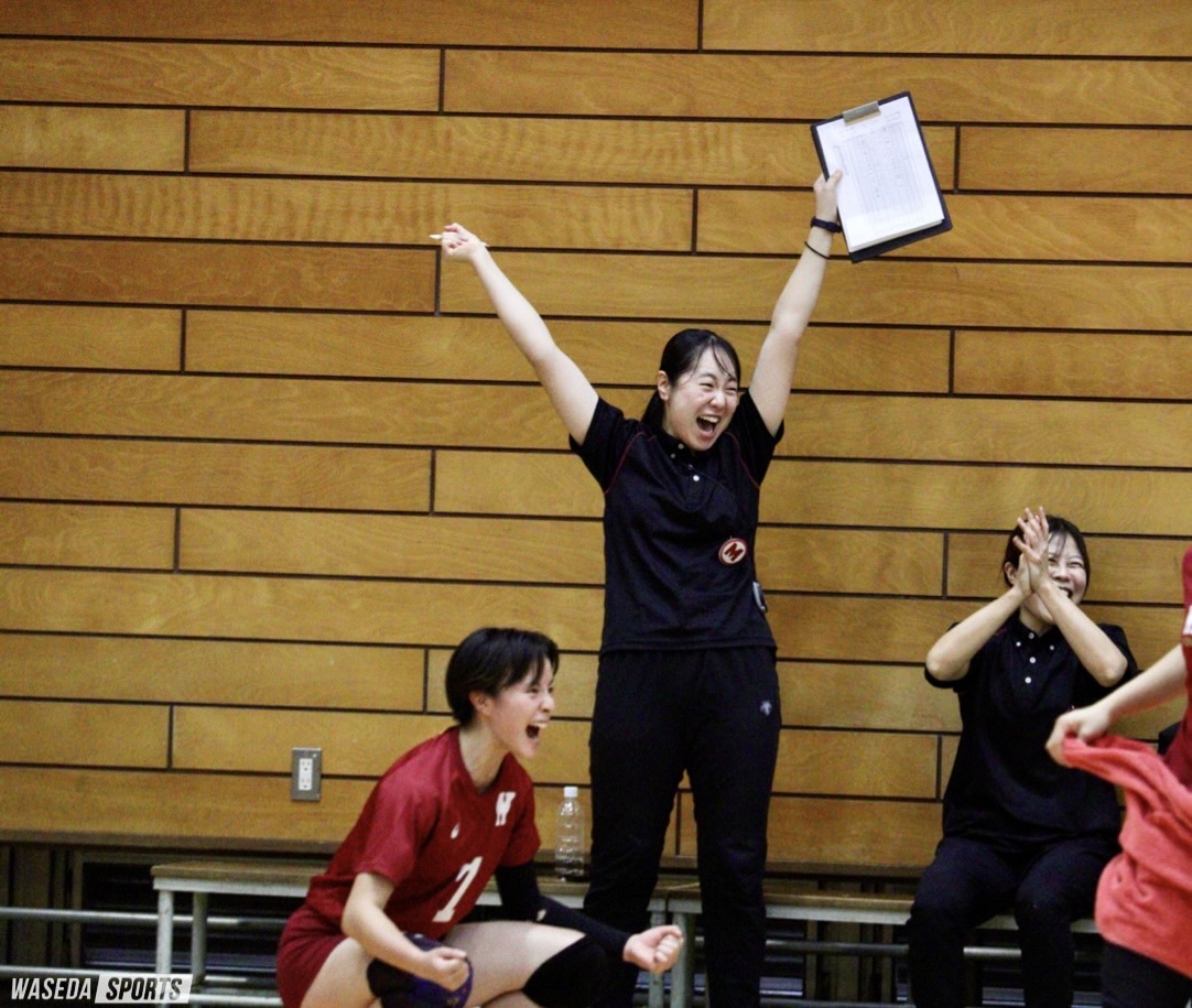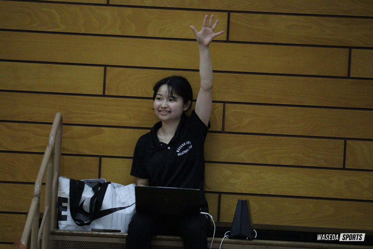 2つ目は、やはり今日の試合です。各セットが始まる前に振付付きで歌う応援歌があるのですが、5セット目始まる前に、私たちの試合の補助をしてくれていた大学(嘉悦大・松蔭大)のラインズとリトリーバーの何人かの子たちがその振り付けを真似して座りながら小さく踊ってくれていたんです。試合後に話を聞くと、「みんな早稲田のこと応援してたよ、見ていて応援したくなる」って口々に言ってくれて、本当に感動しました。お世辞だったかもしれませんが、試合になれば対戦相手になるチームがそうやって応援してくれることは素直に嬉しかったですし、リーグ戦ならではだなと感じました。最後の1点を取り切ることはできなかったし、結果も出せなかったリーグ戦でしたが、勝敗ではない部分で、1年間4年生としてこのチームに関わることができてよかったと思った瞬間でした。